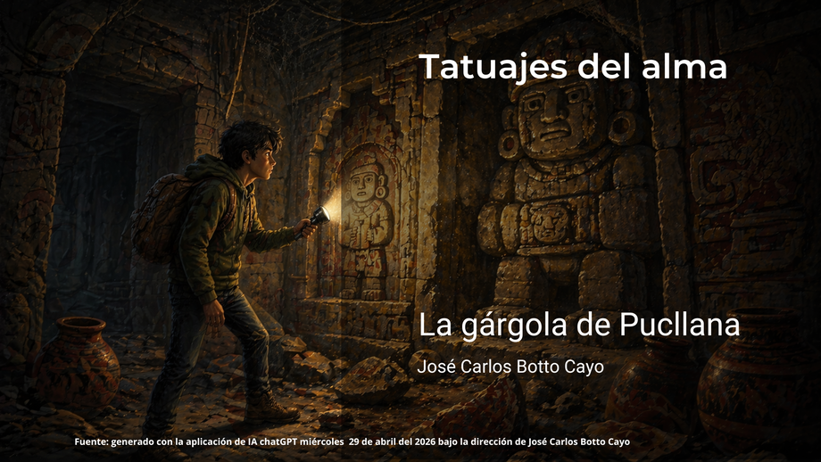 Cada noche, cuando el ruido disminuye y la huaca recupera algo de su silencio original, la gárgola recorre sus espacios. No como guardiana de piedra, sino como testigo activo de un tiempo que no se detiene. A veces se deja ver. A veces no. Pero siempre está.